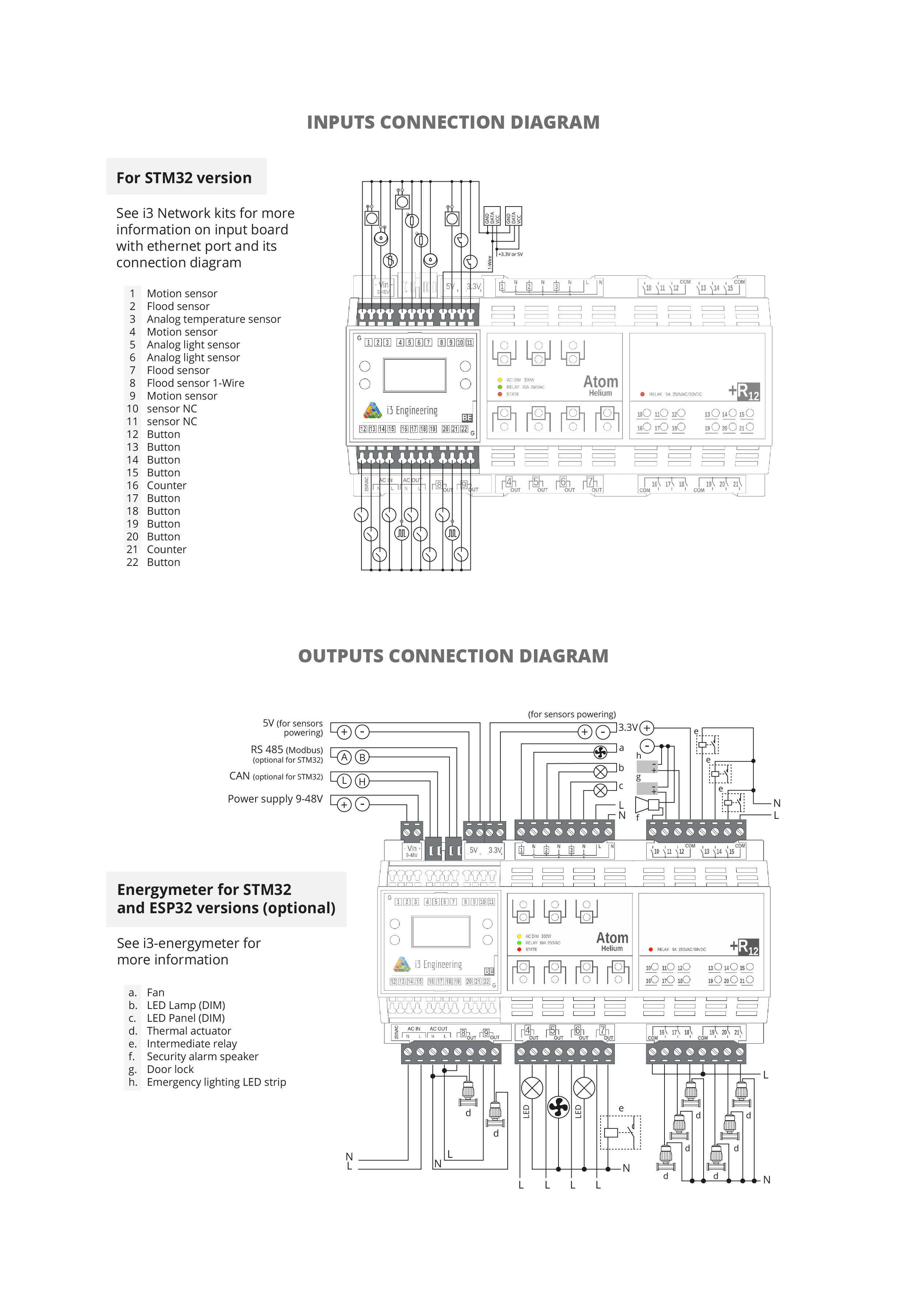 1-Wire, USART, I2C on IN1-IN2, IN7-IN8 for ESP32; on IN1-IN12 for STM32
