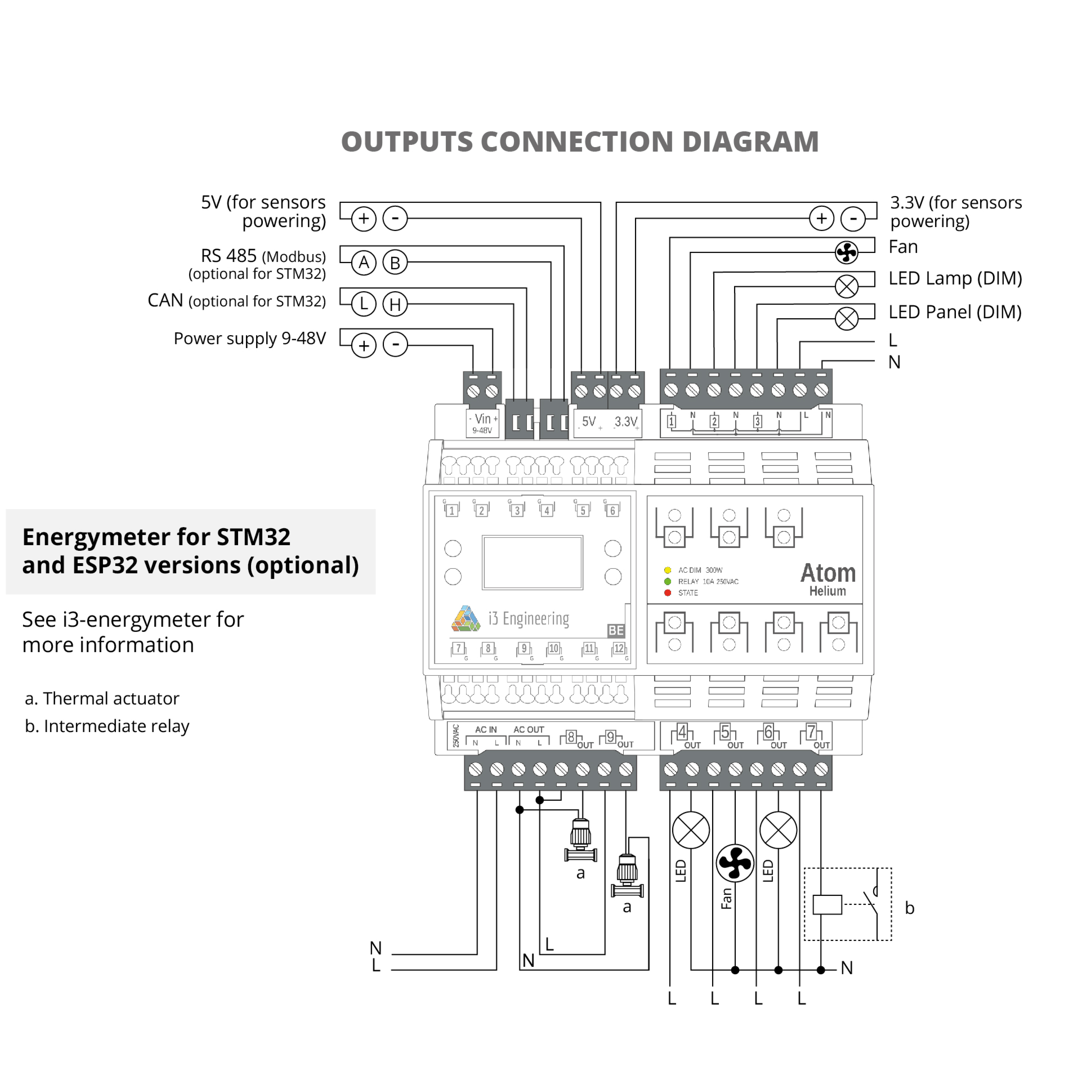 1-Wire, USART, I2C on IN1-IN2, IN7-IN8 for ESP32; on IN1-IN12 for STM32